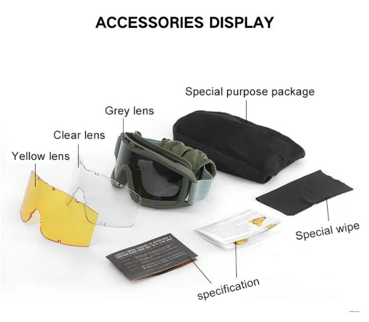 FEATURE: High impact resistant, anti-scratches, Ballistic, Anti-fog