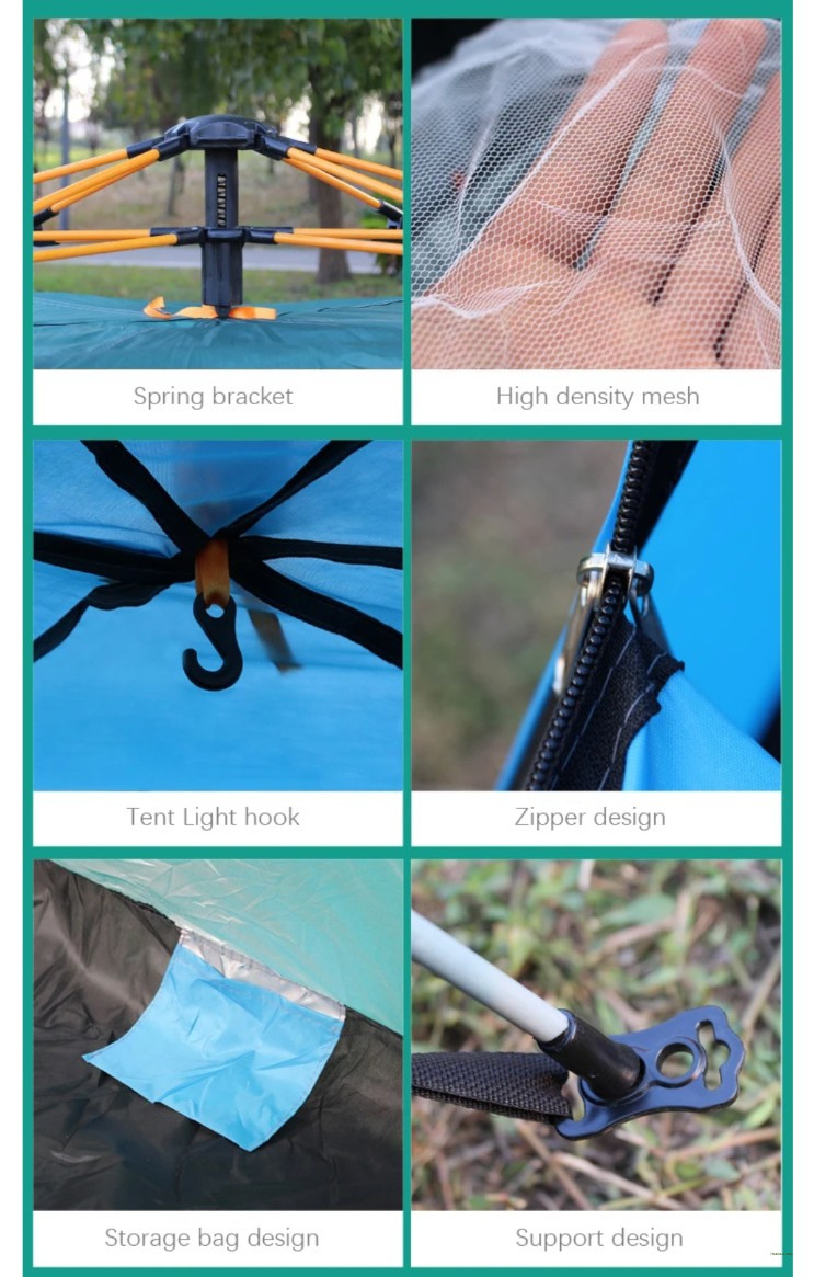 ● With automatic mechanism, fast easy to set up and take down, tent can pop up and in place within a minute