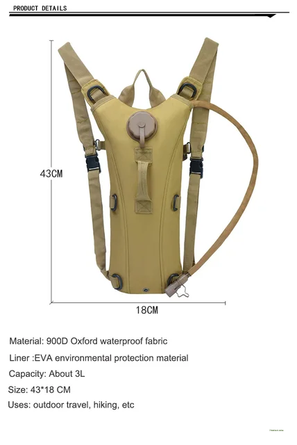 PRODUCT NAME: Tactical Survival Water Bag Carmel Bag Hydration Backpack with 3L water bladder bag