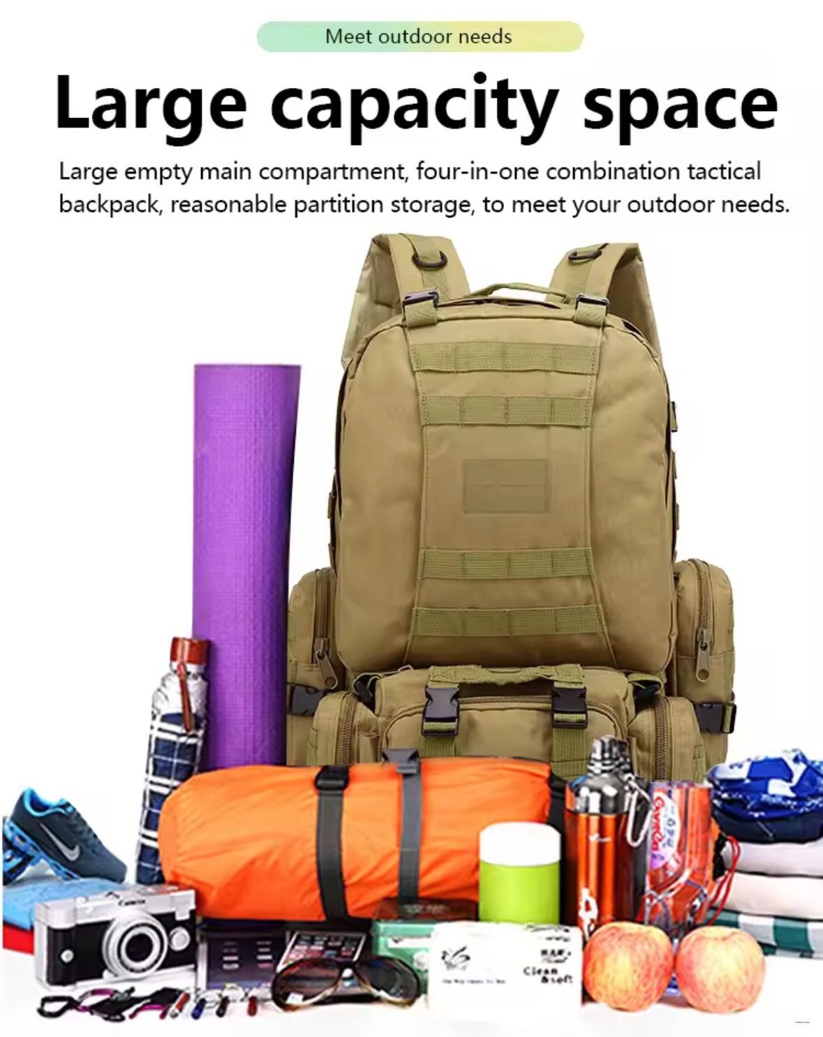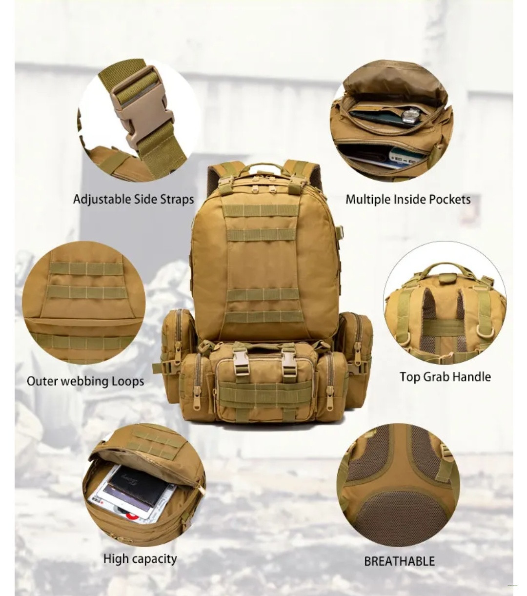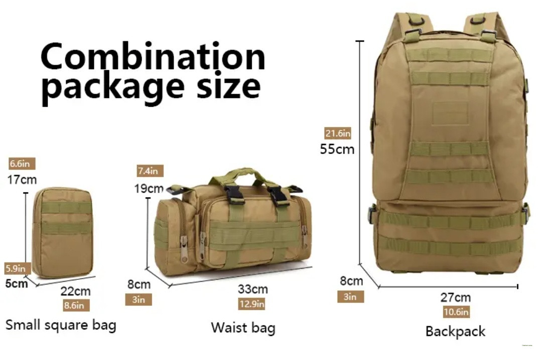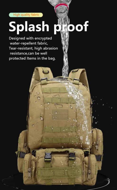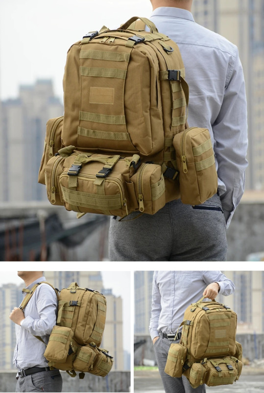 Gear up for your next adventure with our 55L Camping Backpack 4-in-1 Molle Tactical Rucksack—the ultimate companion for hiking, camping, military, or tactical operations.