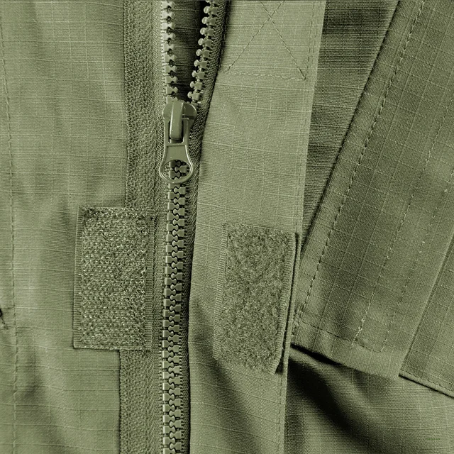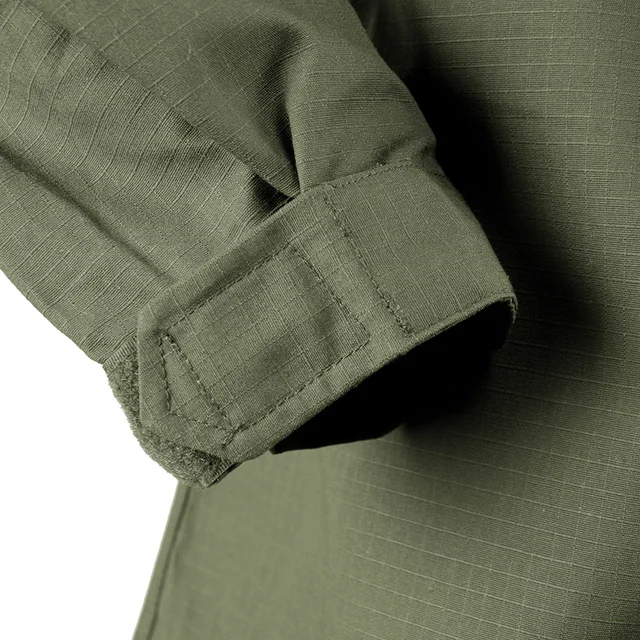 * Two upper-arm pockets with loop-facing patch for insignia.