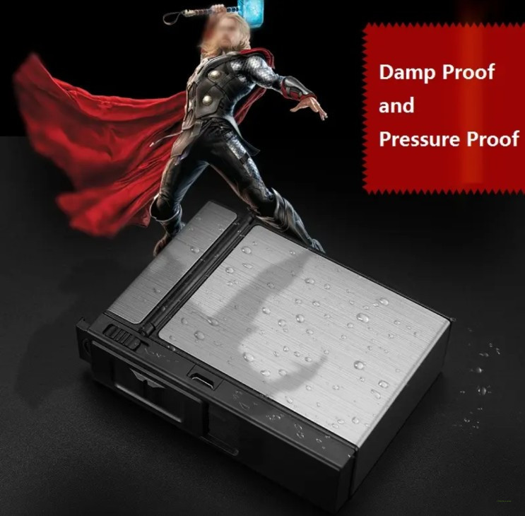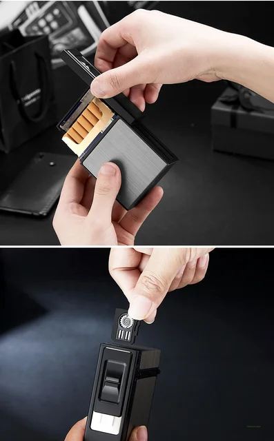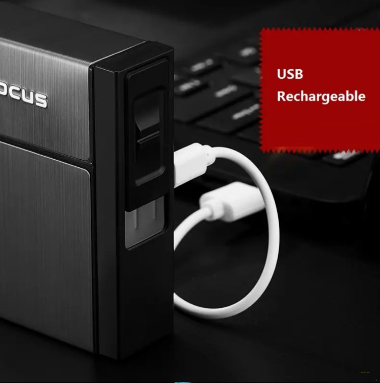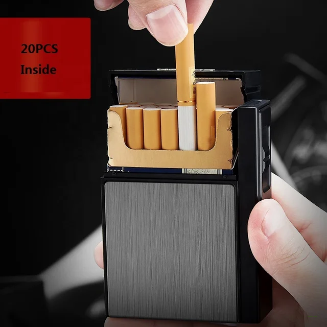 FEATURES: TUNGSTEN wire can be replaced, Replaceable Cigarette box lighter, hold 20pcs cigarettes, USB Rechargeable, coil spark goes out automatically after 10s, 1.5h fully charged can be used 40-60 times.