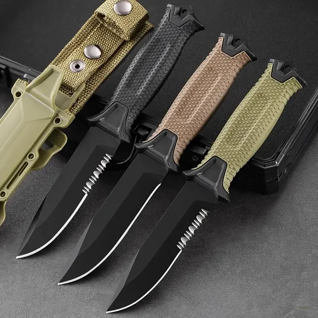 NAME: Outdoor Camping Nylon sheath belt survival knife Tactical Fixed Blade Hunting Knife
