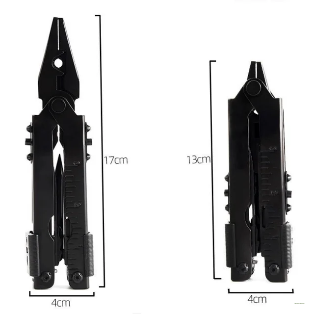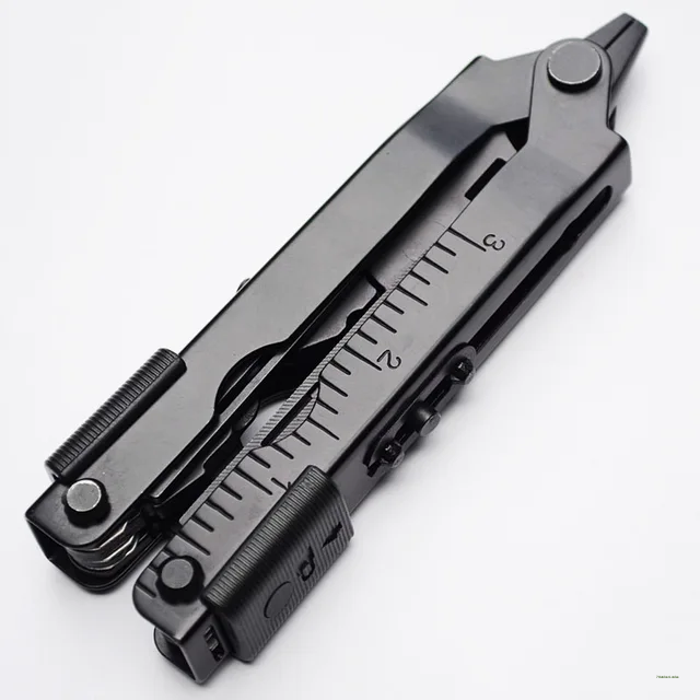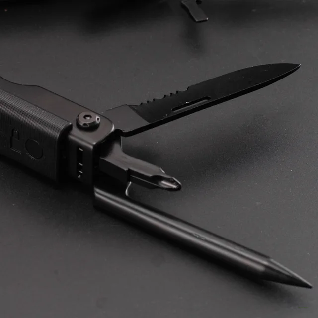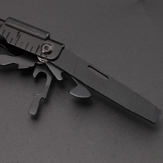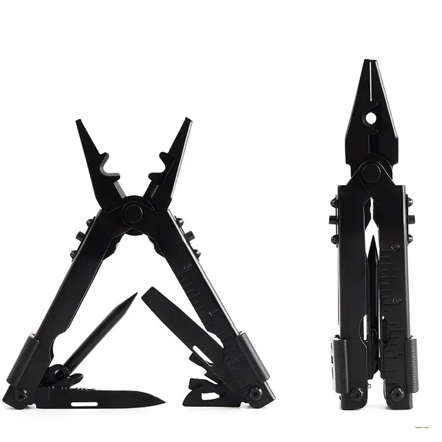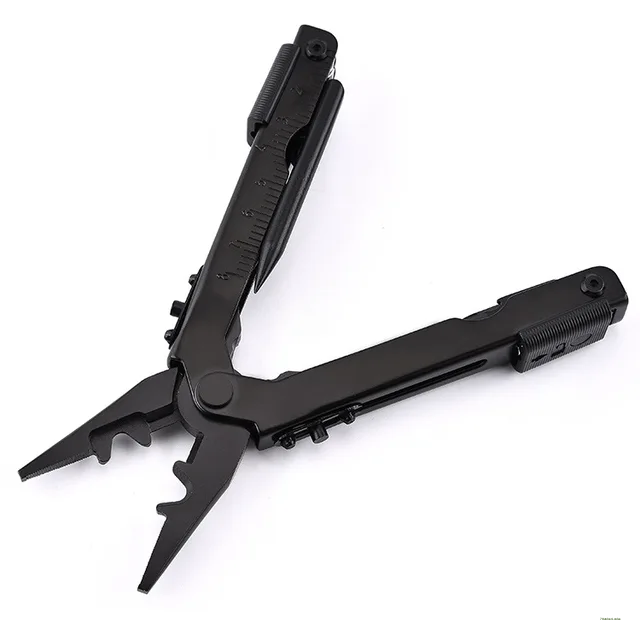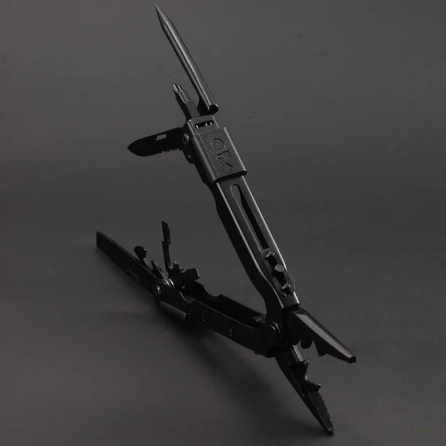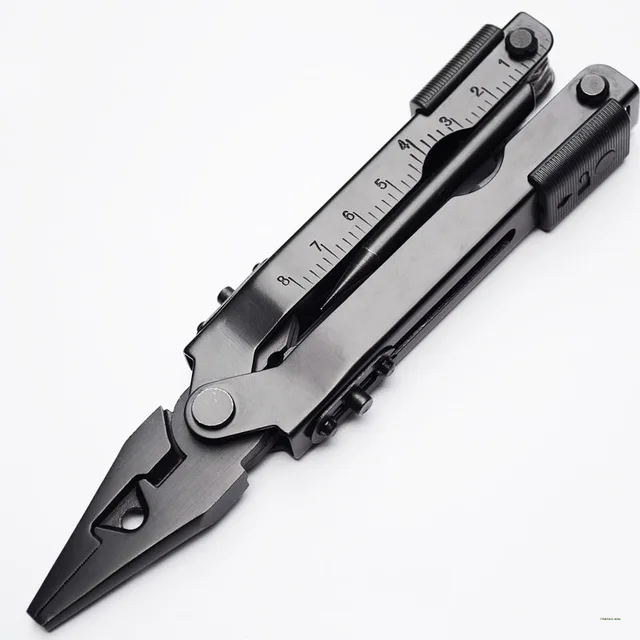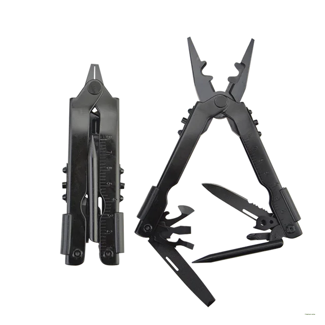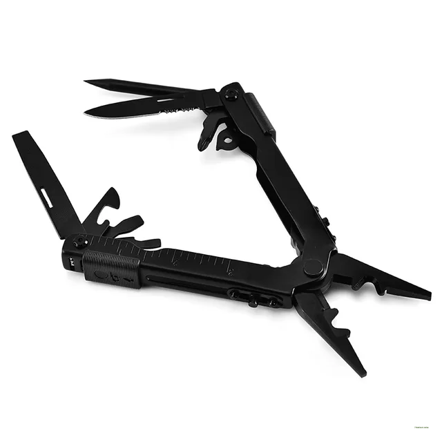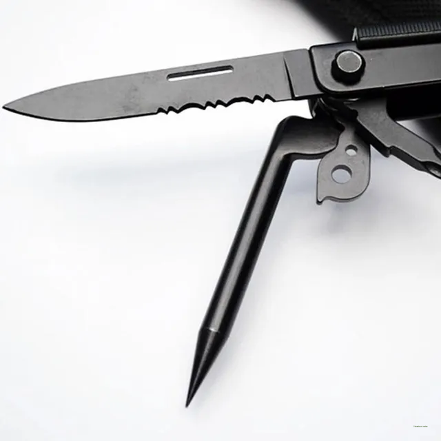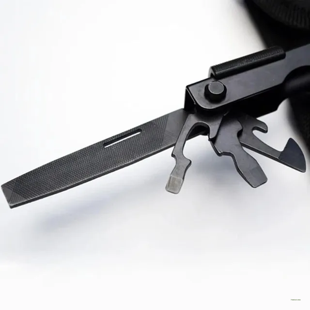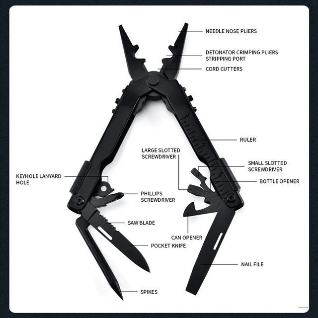 FEATURE: Needle nose pliers, knife, key ring, window breaker, wire cutter, bottle opener, can opener, Phillips screwdriver, file, small flathead screwdriver.