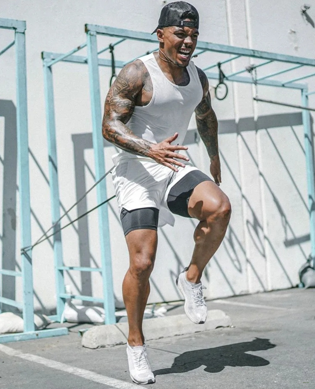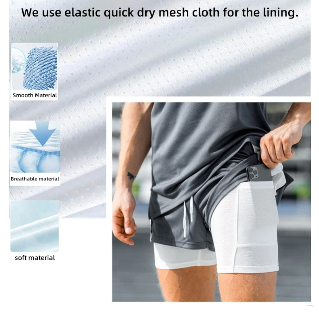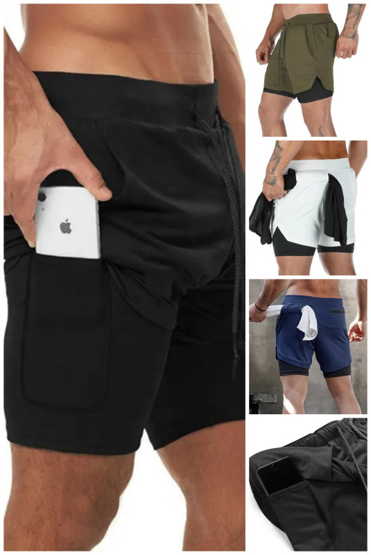 MEN COMPRESSION GYM WORKOUT SHORTS WITH LINER 2 IN 1