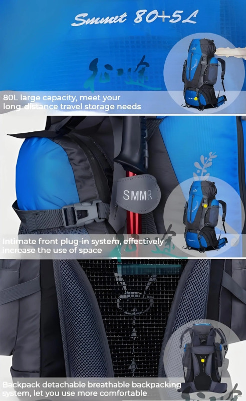 Conquer the great outdoors with the New 80L + 5L Professional Mountaineering Backpack—engineered for serious adventurers. Crafted from tear-resistant nylon and Oxford spinning, this backpack is designed to withstand rugged terrain, unpredictable weather, and heavy loads. With a total capacity of 85 liters, it provides ample space for all your gear—from tents and sleeping bags to food supplies and clothing.
