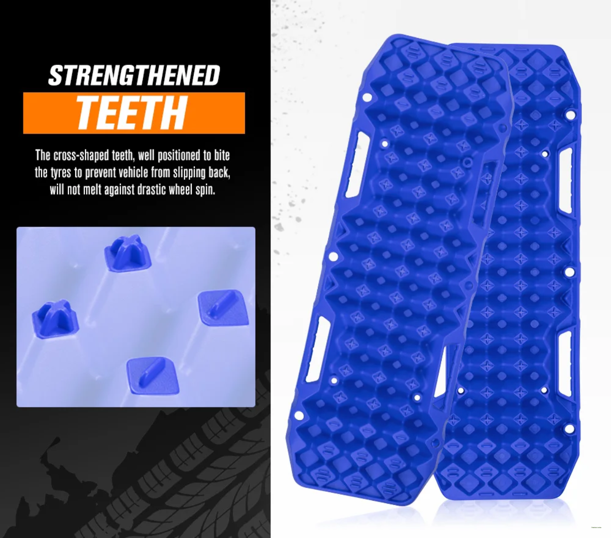 Whether you're exploring remote trails or tackling off-road challenges, these tracks ensure you're never stuck. Their lightweight yet robust construction makes them easy to carry, while the aggressive traction surface offers superior grip in all conditions.