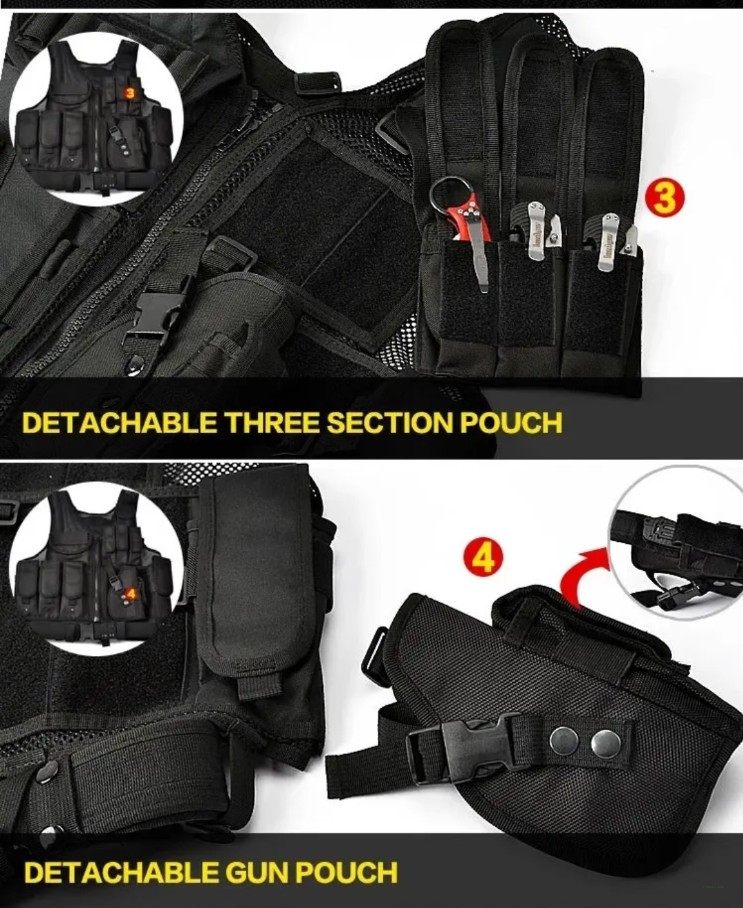 The Tactical Gear MOLLE Training Sport Tactical Combat Vest is a versatile piece of equipment designed for both training and combat scenarios. Featuring a modular webbing system, it allows you to customize the layout with pouches and accessories to suit your specific needs. Built for durability and comfort, this vest provides a secure fit while maintaining freedom of movement, making it ideal for intense training sessions or tactical operations. Whether you're in the field or at the range, the MOLLE system ensures you're always prepared and fully equipped.